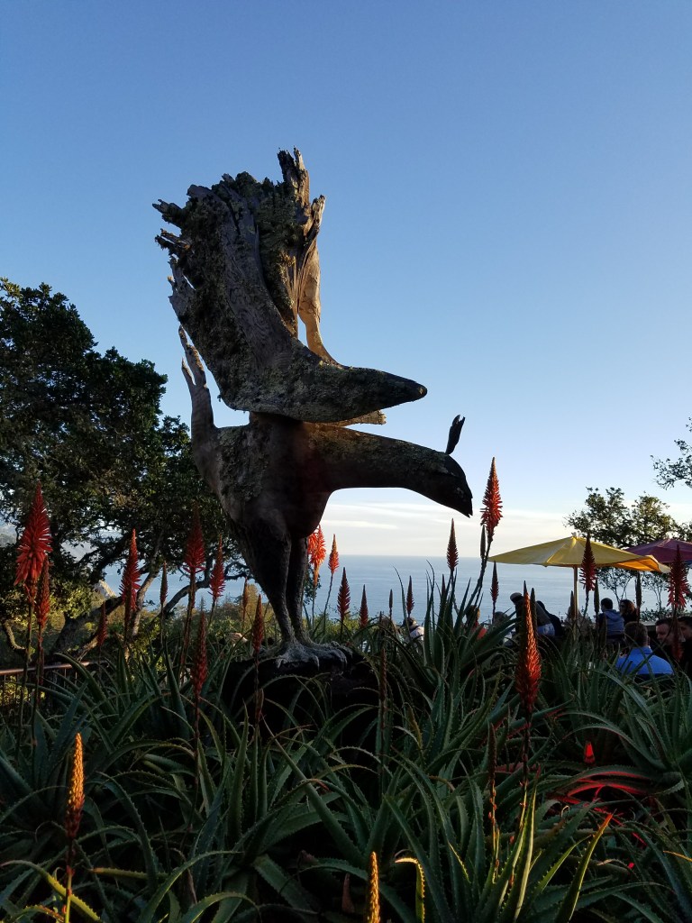 Settled on top of the world, Nepenthe restaurant is iconically perched over 80 feet above the pacific ocean, the legendary restaurant lives up to its name, easing the mind with its refreshing and intoxicating beauty. Together we browsed the gift shop, smelling candles, playing with wind chimes, admiring local artwork, smiling at each other between the isles, a brief touch of hands, the faint stir of the familiar. We hiked in silence through the gardens taking in the beauty of the open world.