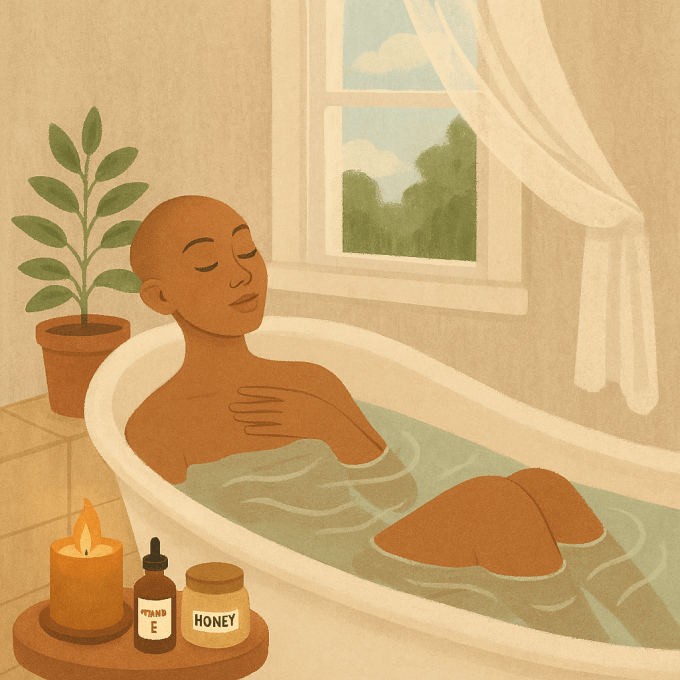 Due to the extreme dryness, I now limit my showers to every few days, using warm, not hot, water and a soft cloth for my face. Long baths with Epsom salts and a few drops of essential oil have become a ritual of nervous system care. These moments, these rituals of abhyanga or self message and soothing warm baths have been reminders that my body is a sacred even in the discomfort.