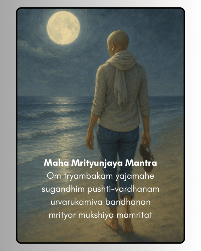On the days that I don’t have my own words or my mother’s humor, I rest in the vibration of mantra. I often find myself humming the Maha Mrityunjaya Mantra under my breath, a soft invocation that I’ve studied, learned and trust.